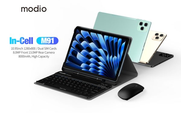 The Modio M91 is built for users who need massive storage and smooth multitasking without the premium price tag of high-end brands. Featuring a vibrant 10.95-inch In-Cell HD display, it provides an expansive canvas for streaming movies, attending virtual classes, or editing documents. The “In-Cell” technology ensures the screen is thinner and more responsive to touch compared to traditional displays.